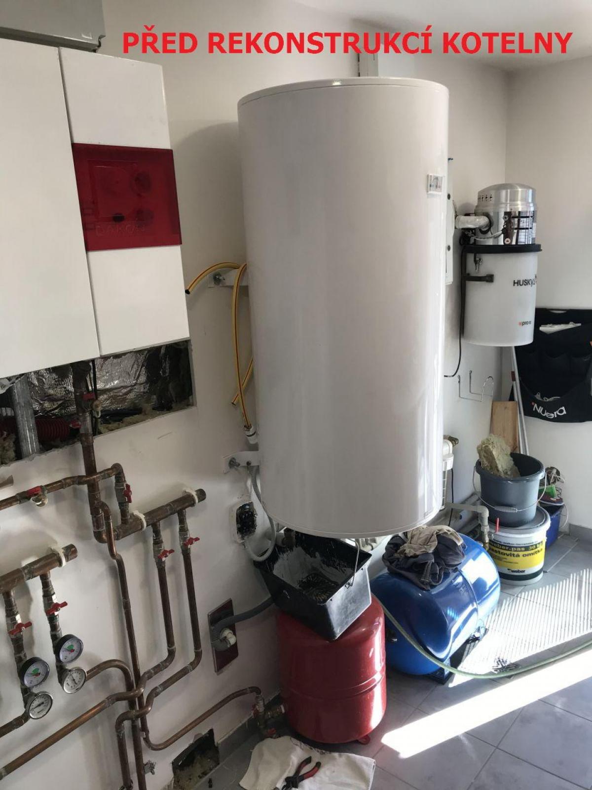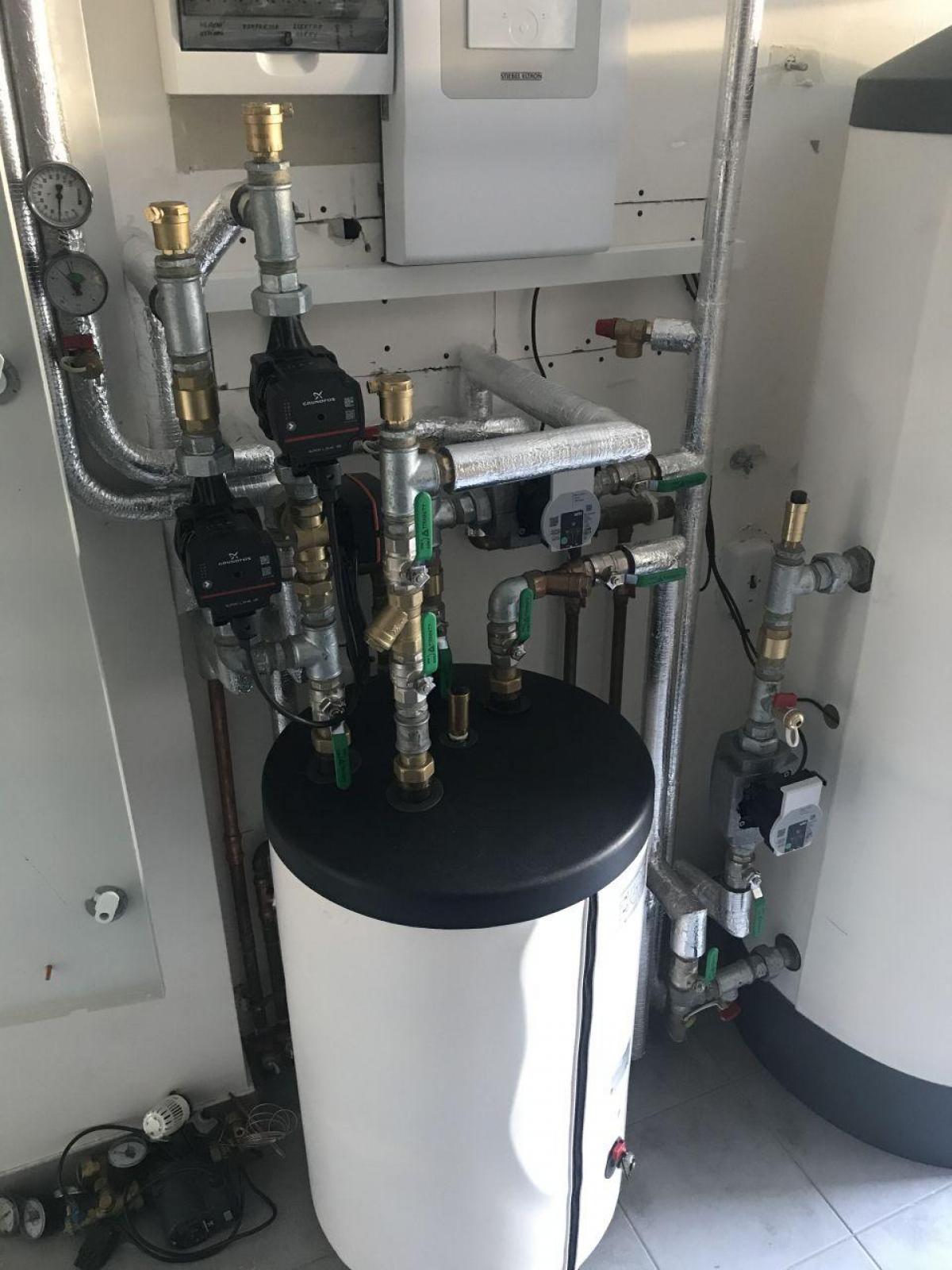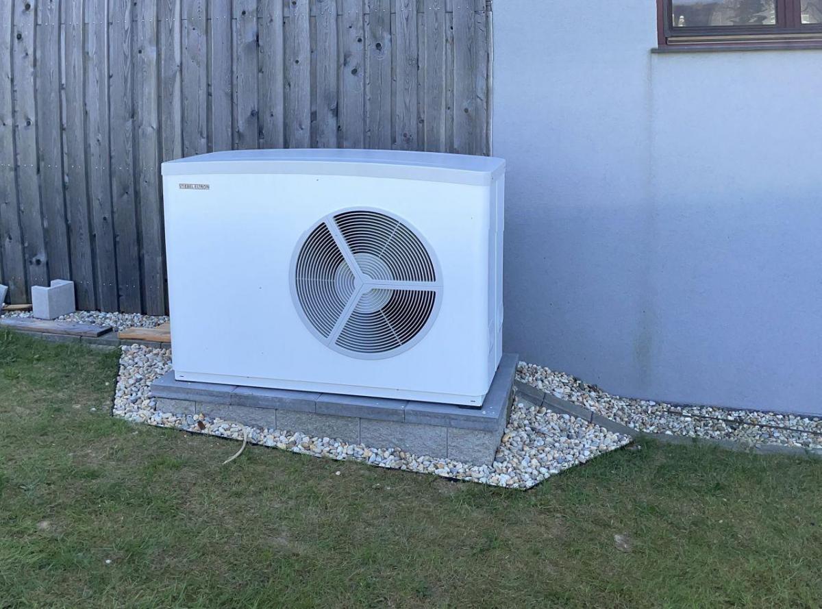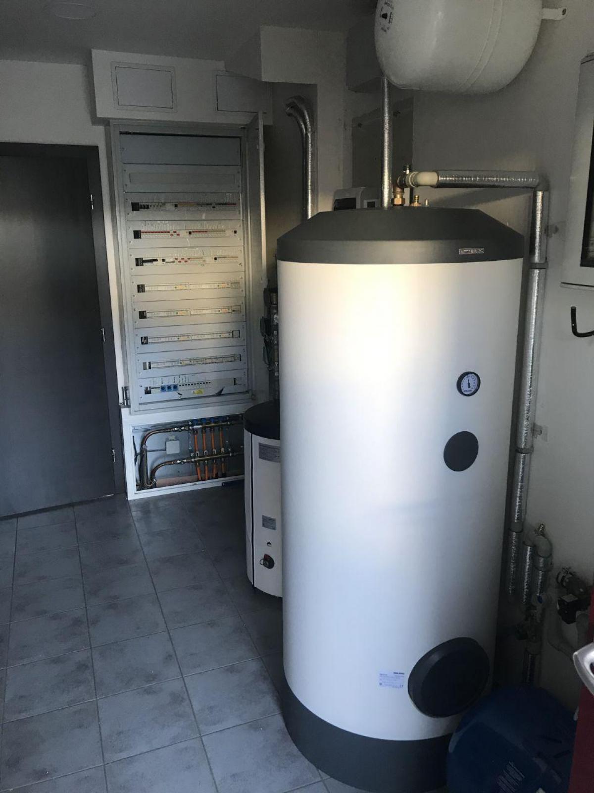 Tepelné čerpadlo vzduch-voda HPA O 13 C PREMIUM STIEBEL ELTRON, akumulační zásobník 100litrů SBP100 classic, zásobník 300litrů SBB301WP pro ohřev teplé vody. Záměna za vytápění elektrokotlem. Napojeno na stávající rozvody TV, UT - podlahové vytápění, radiátory.