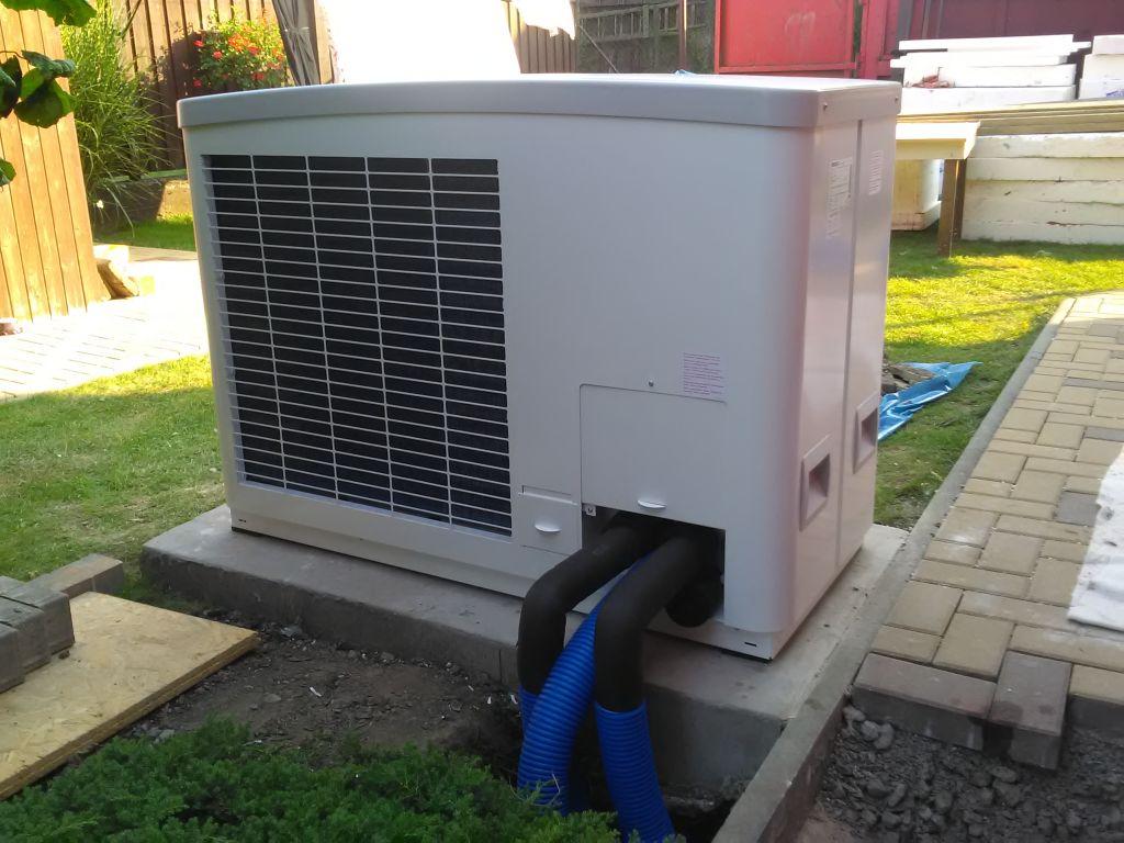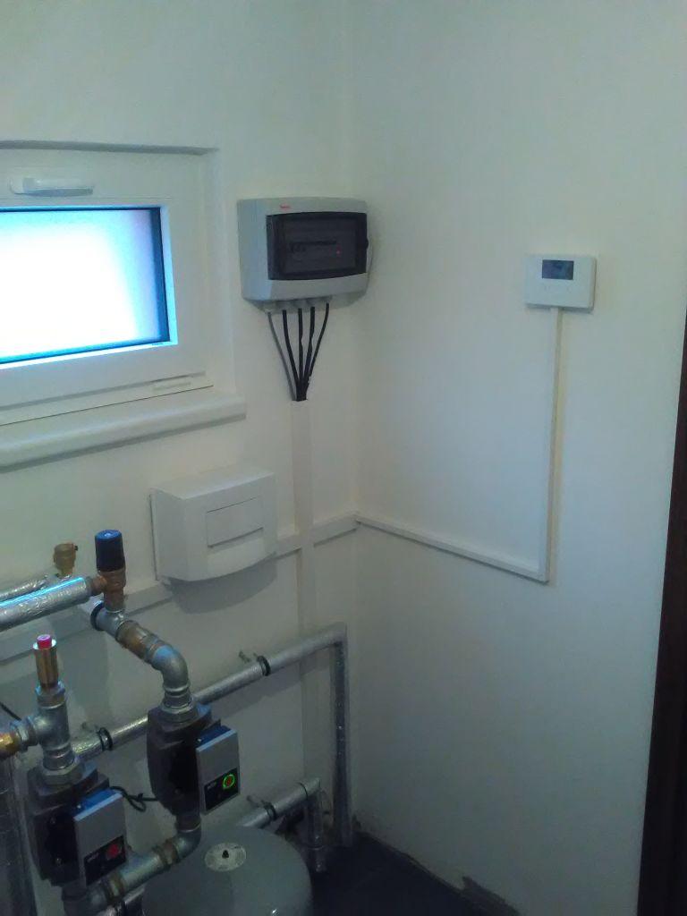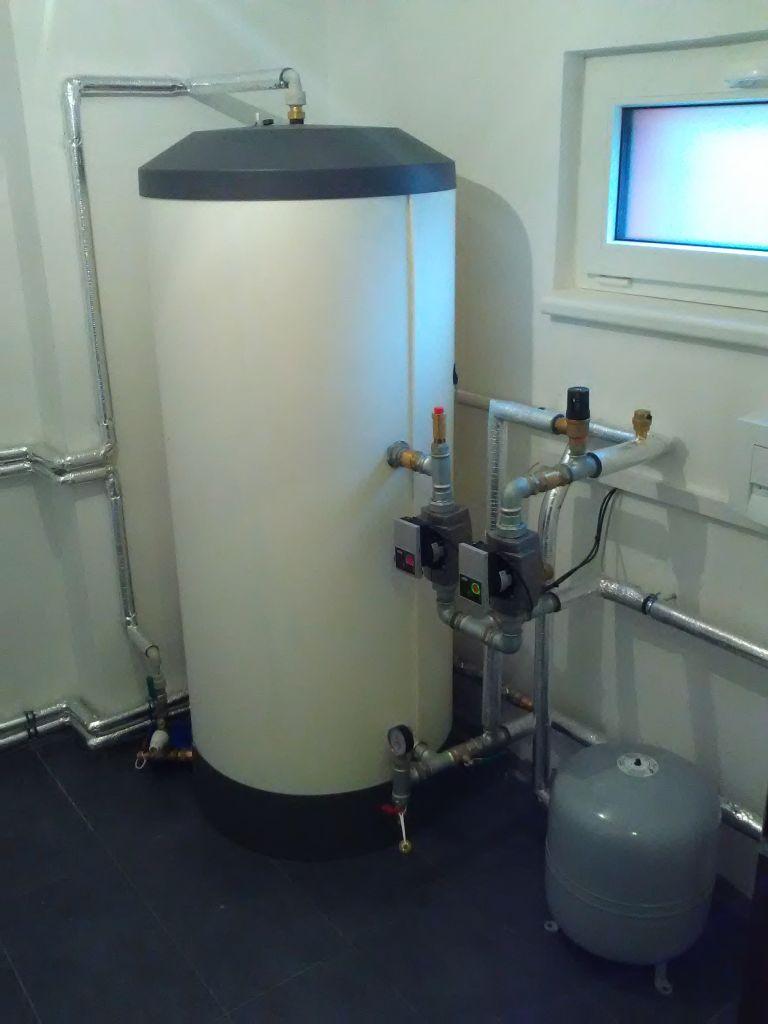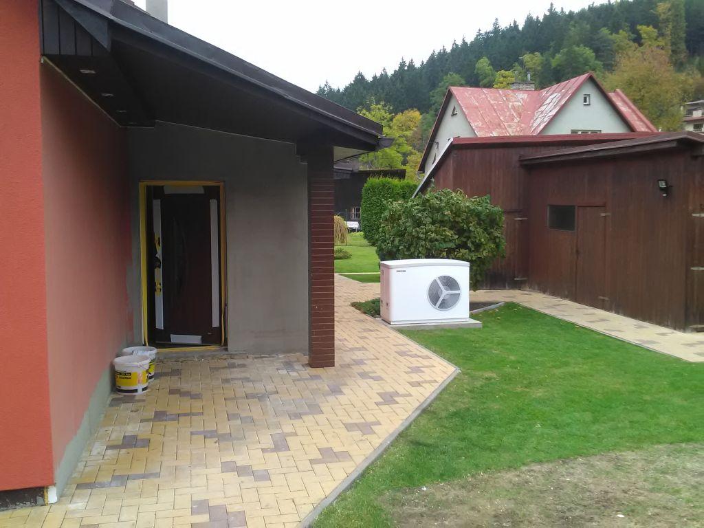 Tepelné čerpadlo vzduch-voda WPL 15 ACS STIEBEL ELTRON, zásobník 300litrů SBB301WP pro ohřev teplé vody. Napojeno na stávající rozvody UT, TUV.